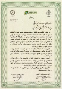 تجلیل از نقش‌آفرینی پتروشیمی تبریز در توسعه پایدار و صیانت از محیط‌زیست؛ قدردانی از مدیرعامل پتروشیمی تبریز در کنگره بین‌المللی شهر سبز و دانشگاه سبز
